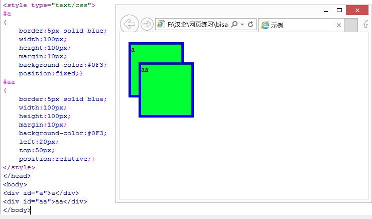 在上面relative的示例中,我們看到了aa遮住了a,這是因為後寫代碼的顯示級別越靠前,那麼在不改變代碼順序的情況下如何讓a蓋住aa?如下: