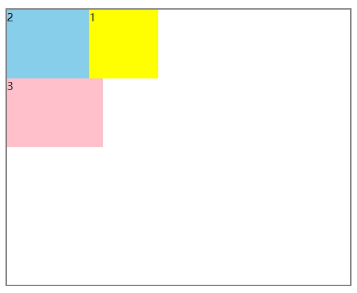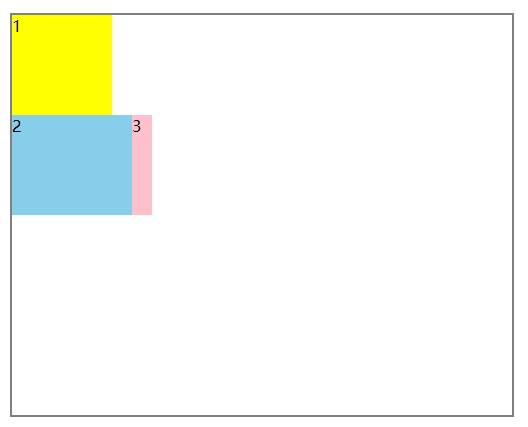 圖中可以看出1,2,3進行了絕對定位,並且重疊在了一起。其重疊特性為下面的特點二。