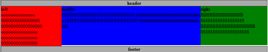 6.到這裡大概就自適應好了。如果想container高度保持一致可以給left middle right都加上min-height:130px