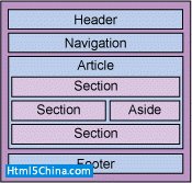 接下來是Article區,這一區域由< article>標簽來定義,其中包括了其自己的< header>信息。包含在< article>中的< section>也包含了一個自己的的< header>標簽。