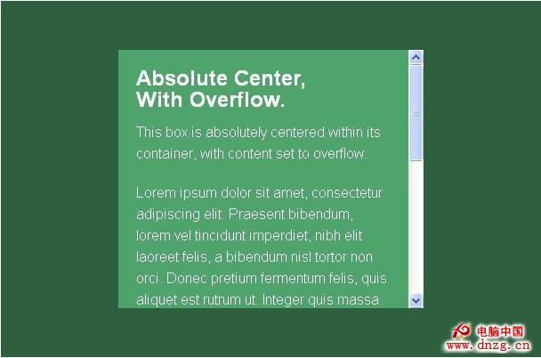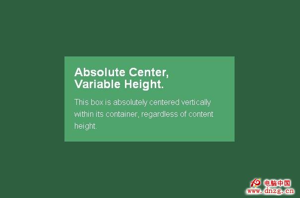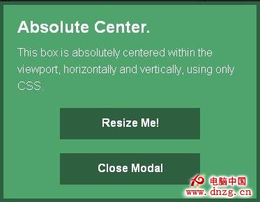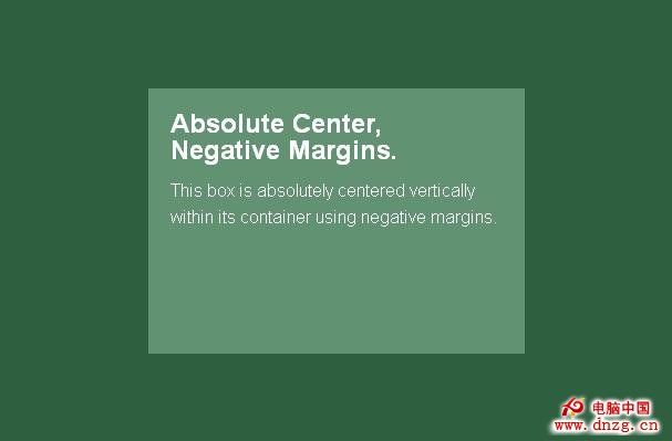 “完全居中”法簡單方便,迅速及時。以前使用負Margin值的地方,都可以使用Absolute居中。無需繁瑣的數學計算,無需額外標簽,而且可以隨時改變大小。
