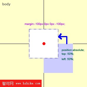 絕對定位的元素left設為50%時,是已左上角為原點的,所以只要再使用margin屬性添加負值補償回來即可,下面示例代碼,需要的朋友可以參考下
