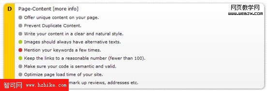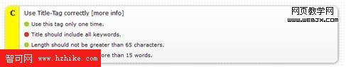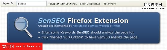 頁面構建的工作不僅是要讓頁面盡可能的達到設計稿的藝術要求,網絡傳輸的速度要求,還要為搜索引擎更容易找到你做出相應的努力。以前我們相對少得談及此,SenSEO是一款SEO診斷的火狐插件,你打開面板在裡面輸入你的關鍵字,之後點擊後面的幾個按鈕。可以給你一個綜合打分,分析你的Title、Description、 Keywords、robots、Number of Words、Number of matching Keywords、KeyWord-Density、Number of Html等等。這個插件提出的有一些分析建議還是很有借鑒意義的。
