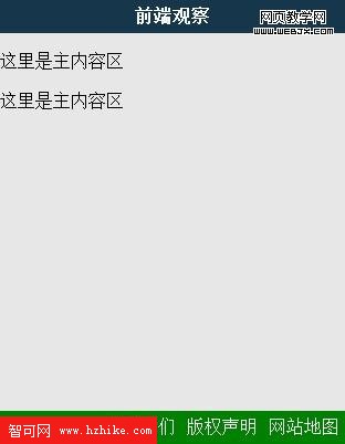<div class="flex_wrap"> <div class="flex_hd">前端觀察</div> <div class="flex_bd"> <p>這裡是主內容區</p> <p>這裡是主內容區</p> </div> <div class="flex_ft"> <a href="http://www.qianduan.Net/about" title="關於我們">關於我們</a> <a href="http://www.qianduan.Net/copyright" title="版權聲明">版權聲明</a> <a href="http://www.qianduan.Net/sitemap" title="網站地圖">網站地圖</a> </div> </div>