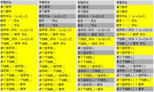 W3C CSS2.1的 4.1.3 節中提到:標識符(包括選擇器中的元素名,類和ID)只能包含字符[a- zA-Z0-9]和ISO 10646字符編碼U+00A1及以上,再加連字號(-)和下劃線(_);它們不能以 數字,或一個連字號後跟數字為開頭。它們還可以包含轉義字符加任何ISO 10646字符作為一個數 字編碼。
