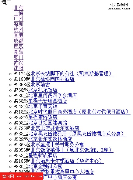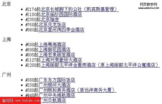 <dl>這種結構在顯示上沒有任何問題,切換城市時下面的列表會相應改變。但當無法正常加載CSS時顯示效果就比較杯具了,截圖如下: