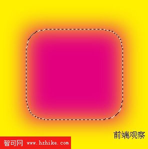 對於.text:after的投影層,需要涉及到ps羽化選區的知識,在羽化圖像的時候,是根據選區邊界為中心,向兩邊羽化,如果羽化值為10px,那麼就是左右各5px,那麼以選區邊界為中心的10px像素范圍會減緩的從不透明過渡到全透明,如圖: