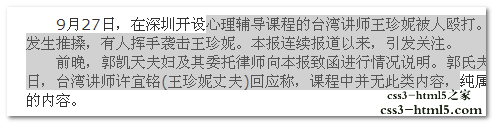 於是,文本選中的默認藍色背景就此變成了淡灰色,如下圖所示,截自Chrome浏覽器: