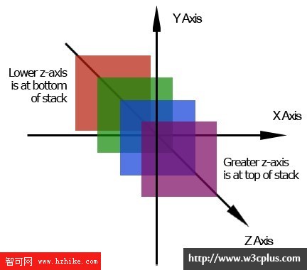 z-index 屬性只能被應用與定位元素上。它為頁面增加了第三個維度並設置了元素的層級上的順序。