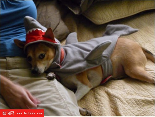 一只穿著鲨魚服裝的小狗並不是鲨魚