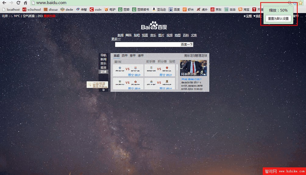 一些網站的首頁背景圖尺寸不隨浏覽器縮放而變化,例如百度個人版的首頁,縮放後背景圖的尺寸並不改變: