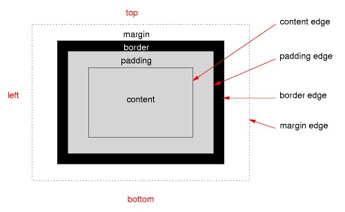 在CSS中,每一個元素都由一個矩形盒子所包含。每一個盒子都會具有一個內容區,內容區被一個內邊距所包裹,內邊距外是盒子的邊框,並且在邊框之外會有一個外邊距用於與其他盒子分隔開來。這些你可以從下面這張圖片看到。