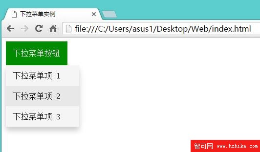 在上面的例子中,下拉菜單的內容設置了 box-shadow 屬性,這個屬性主要用於添加陰影,這樣下拉菜單看起來就像一個“卡片”一樣。該屬性指定下拉菜單在水平方向陰影為 0,垂直方向為 8 像素的陰影,模糊距離為 15 像素,陰影的尺寸為 0,並指定陰影的顏色為黑色,且透明度為 0.2。