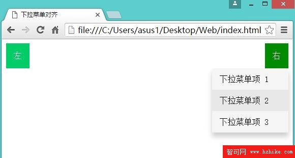 如果下拉菜單設置了 float:right 樣式,默認都是從左向右顯示,菜單內容則會超出浏覽器右邊窗口,所以還需要設置 right:0,讓下拉菜單內容從右向左。