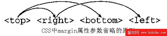使用margin屬性是用來設置對象四邊的外邊距,如果提供全部四個參數,將按上-右-下-左的順序作用於四邊,即: