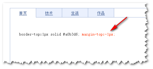 我其實已經在圖上做了點小小的標注,使用margin-top:-1px;解決選項卡下邊框顯示的問題。