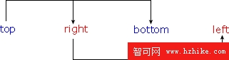 h1{margin:10px0px15px5px;}與內邊距的設置相同,這些值的順序是從上外邊距(top)開始圍著元素順時針旋轉的: