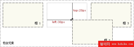如果將 top 設置為 20px,那麼框將在原位置頂部下面 20 像素的地方。如果 left 設置為 30 像素,那麼會在元素左邊創建 30 像素的空間,也就是將元素向右移動。