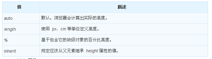 height 屬性設置元素的高度。