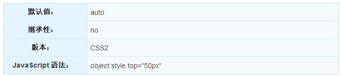 注釋:如果 "position" 屬性的值為 "static",那麼設置 "top" 屬性不會產生任何效果。