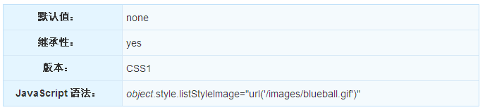 這個屬性指定作為一個有序或無序列表項標志的圖像。圖像相對於列表項內容的放置位置通常使用list-style-position屬性控制。