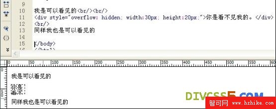使用CSS樣式通過對“你是看不見我的”DIV CSS層設置固定的高和寬,然後通過overflow:hidden樣式即可使得超出固定的高寬內容隱藏同時也不占用被隱藏地方位置。