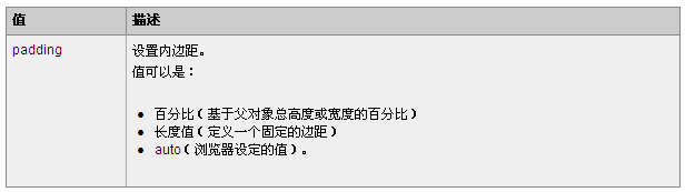padding 屬性定義元素邊框與元素內容之間的空間。