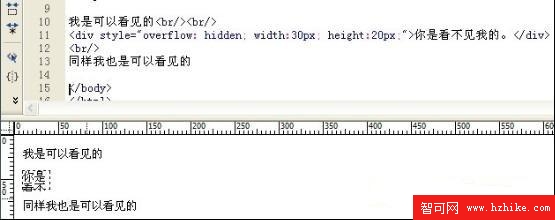 使用CSS樣式通過對“你是看不見我的”DIV CSS層設置固定的高和寬,然後通過overflow:hidden樣式即可使得超出固定的高寬內容隱藏同時也不占用被隱藏地方位置。