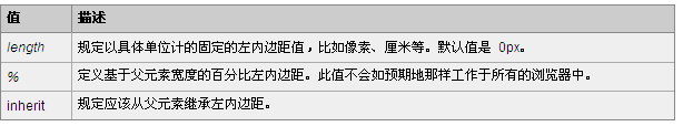 該屬性設置元素左內邊距的寬度。行內非替換元素上設置的左內邊距僅在元素所生成的第一個行內框的左邊出現.