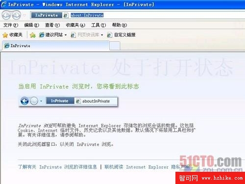 InPrivate浏覽可以幫助用戶避免IE存儲浏覽會話數據,包括CookIE、Internet臨時文件、歷史記錄以及其它數據,同時默認情況下將禁用工具欄和擴展,大大增強了上網的安全性。
