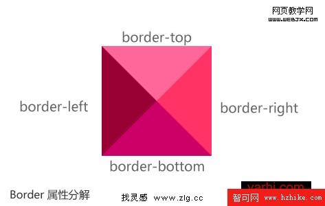 1)我們可以使用border 屬性來實現,border屬性包括寬度、顏色、樣式。我們可以改變它的顏色來適應。通過下圖我能就能分析出,border屬性相關特點: