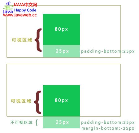 這一步應該算是本主題的核心,至於32767這個數你可以理解成“足夠大”,以便於有足夠的空間去擴展它的盒子,這麼高應該是巨人症吧,沒關系,我們可以用margin-bottom的負值去隱藏它,這個技巧,在我看來,我真的解釋不清楚,有句古話: 意會,言傳! 你只要試試看,就會領會到其中的奧妙。下邊這幅圖對你的理解應該有幫助: