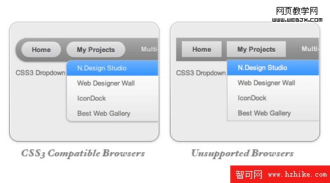 下圖展示了不兼容 CSS3 情況下的菜單樣式。