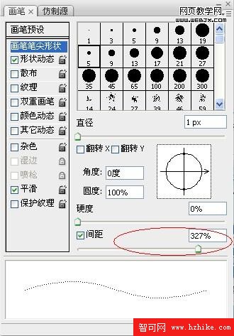 (1)使用畫筆—點擊“畫筆筆尖形狀”,調整“間距”