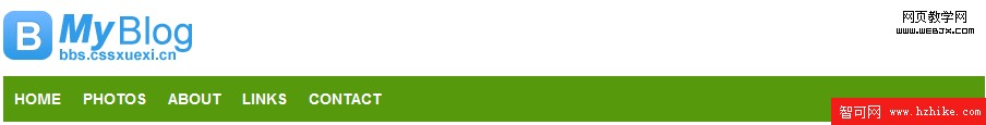 如果你還是不能太明白這句話,我們就做個實例,把我們第5節頁面的頭部blog區域用定位(position)來布局一下
