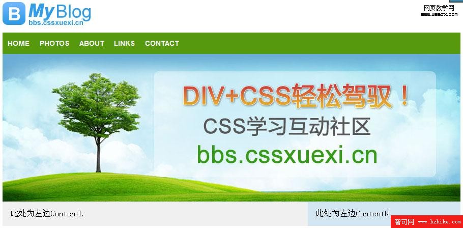 #Content #ContentL,#Content #ContentR{float:left; padding:15px;}/*為什麼都要左側浮動,如果不明白就去看第二節*/