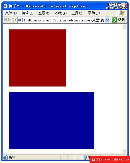 2)紅色方塊寬度和高度均為200像素,藍色方塊