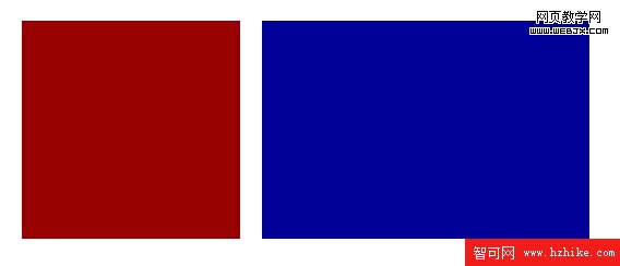 1)兩個方塊,一個紅色#900,一個藍色#009;
