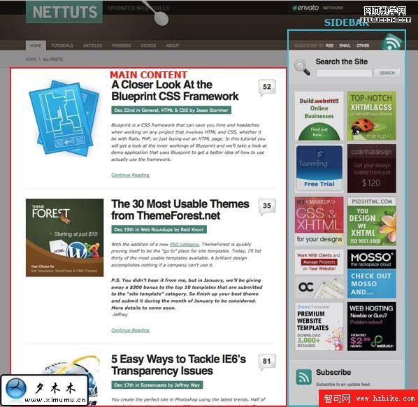 正如你看到的,NetTuts很好的遵循了黃金比率。頂端三分之一的網頁再次分成了三分,非常接近黃金比率。難怪NetTuts的設計是如此吸引人!