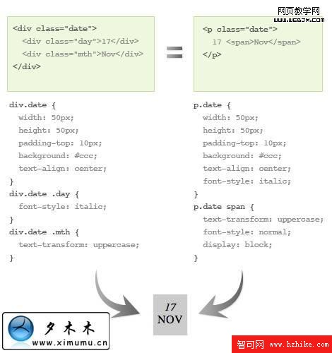Example:這個例子很好的說明了,使用有語義標簽的好處.