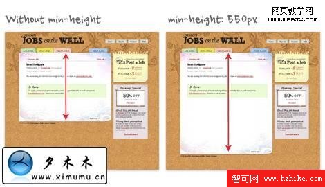 2. Min-height min-height屬性允許對一個元素指定最小的高度.當你在平衡布局的時候你會發現它是多麼的有用.我用這個屬性來給我的網站理指定一個大小.