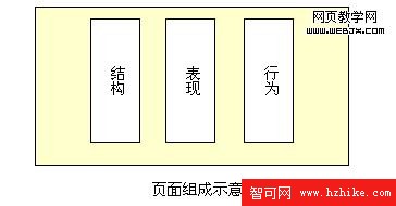 在解決這個問題之前,我們先來看看網站中一個頁面的基本組成:通常,一個頁面(前台)由一下三個部分組成:結構,表現和行為。