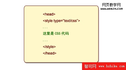 注:上圖綠色部分就是CSS代碼,注意它是如何加入到頁面中的,至於具體這些CSS代碼如何書寫,這個是我們後面要學習的內容,現在可以先不管它。下面我們來看第三種方法: