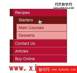 到目前為止例子所建的是一個水平的導航,但有時我們需要在水平下添加一個副導航.我們給例子再增加嵌套並添加其CSS樣式.