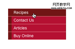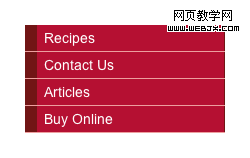 在上面可以看到這個CSS是添加了左右邊框,並且使對象塊狀,這樣做的效果使鏈接看起來像一個按扭.這種效果看起來像是給導航添加一個圖片似的.