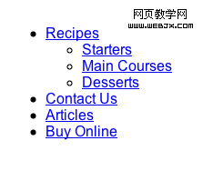 嵌套列表是一個很好的方式來描述導航系統.在這個例子我們用了第一個列表來表示主菜單,而子菜單則包含在主菜單的下面.這樣如沒有CSS樣式,結構也是非常的清晰.