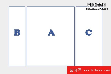 2、設定A、B、C的寬度,將A、B、C分別向左浮動