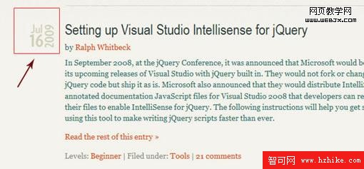LearningjQuery.com 博客帖子列表的左邊有一個很酷的日期,如圖: