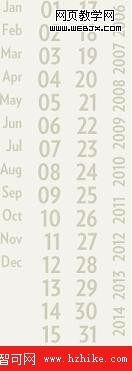從圖中我們看到,“2009”垂直排列在右側。用Firebug查看元素,文本“2009”出現在Html結構之中,本文介紹實現這種效果的兩種方法。