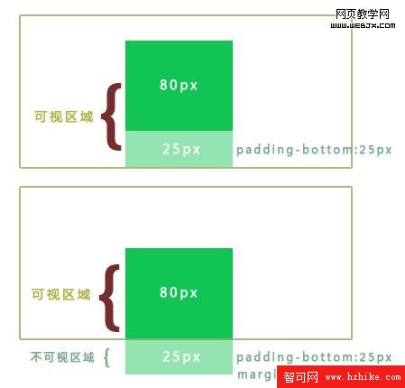 這一步應該算是本主題的核心,至於32767 這個數你可以理解成“足夠大”,以便於有足夠的空間去擴展它的盒子,這麼高應該是巨人症吧,沒關系,我們可以用margin-bottom的負值去隱藏它,這個技巧,在我看來,我真的解釋不清楚,有句古話: 意會,言傳! 你只要試試看,就會領會到其中的奧妙。下邊這幅圖對你的理解應該有幫助: